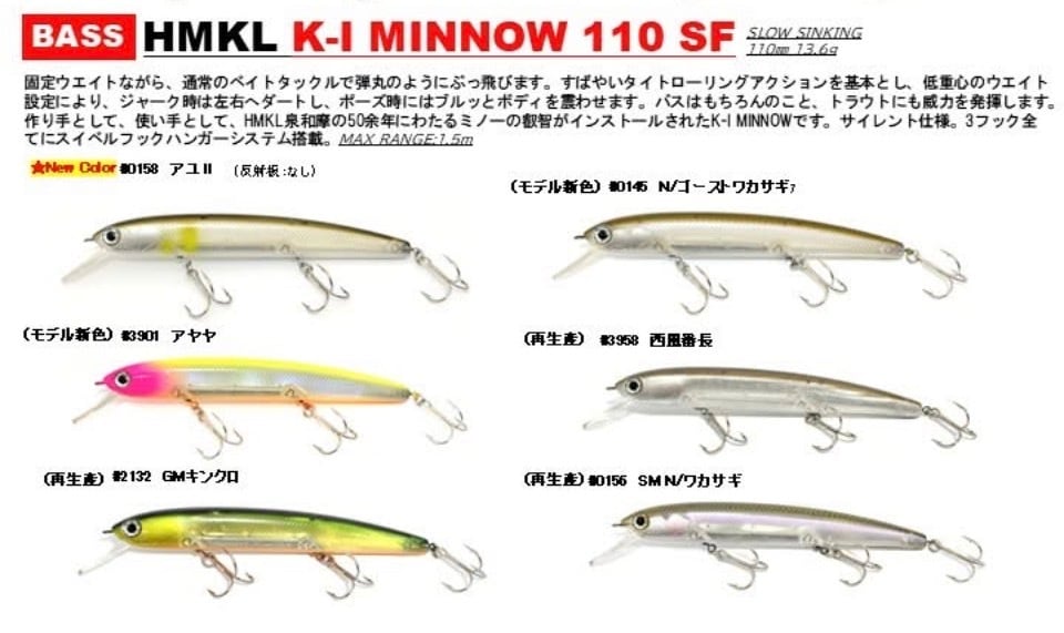 作り手として、使い手として、HMKL泉和摩の50余年にわたるミノーの叡智がインストールされた、新しいK-I MINNOWをぜひご堪能ください。