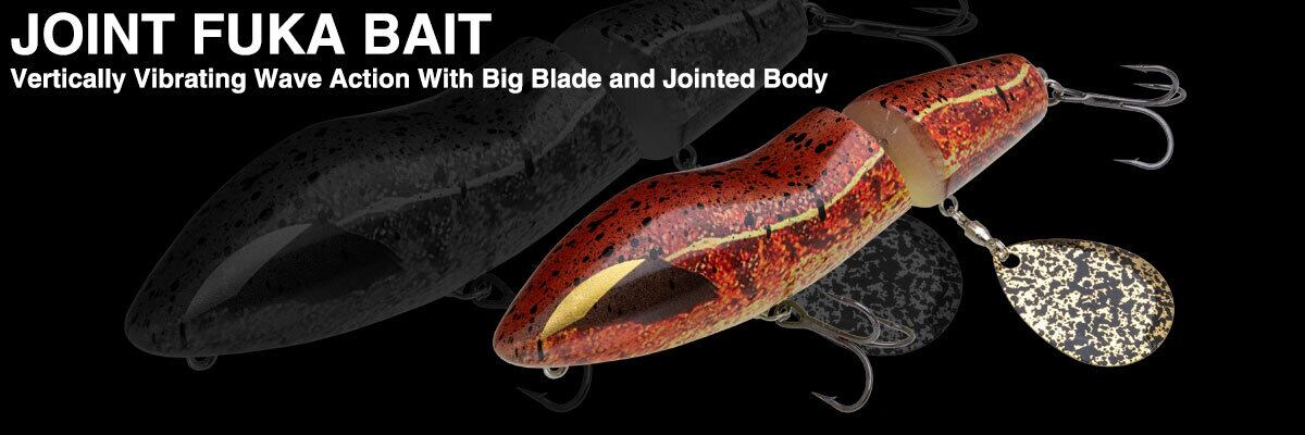 縦波動I字系トップウォーターとして新たなカテゴリーを築き上げた「フカベイト」。その基本コンセプトはそのままに、ジョイントボディによるさらに複雑な縦波動の発生と、ABSボディによる視覚効果をプラスしたのが「ジョイントフカベイト」。